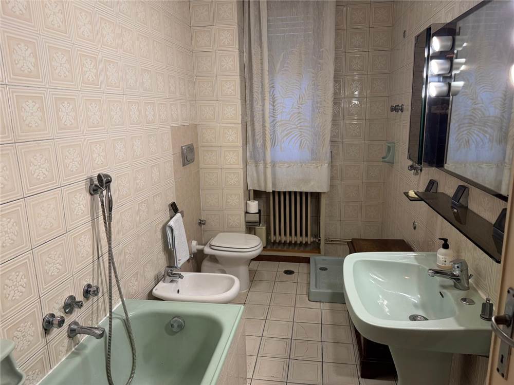 Propone in affitto ampio appartamento di 3 locali più servizi, cantina e box.