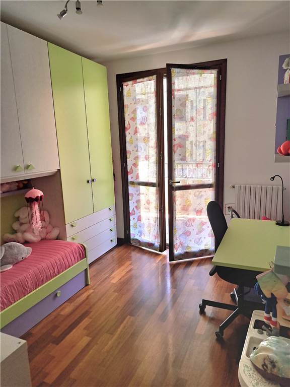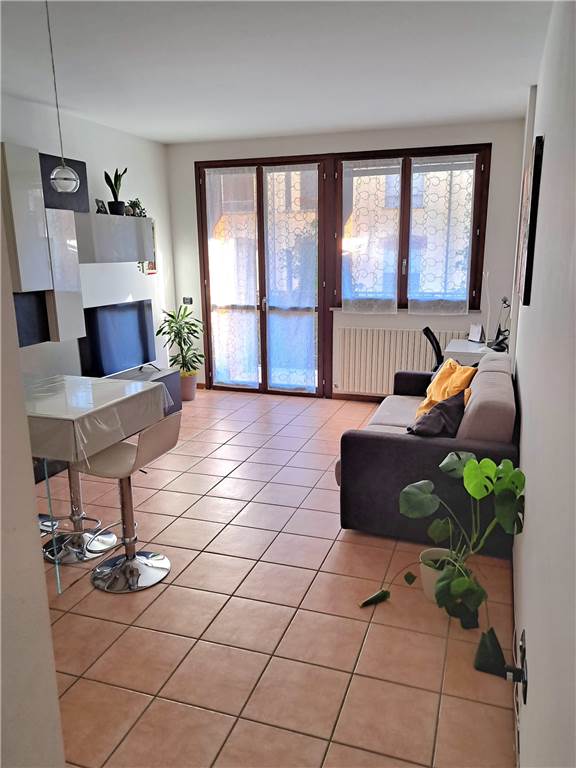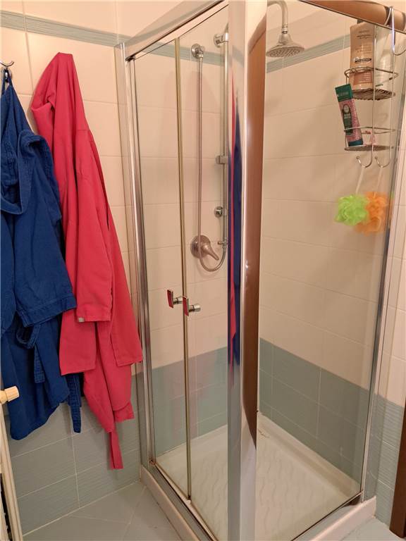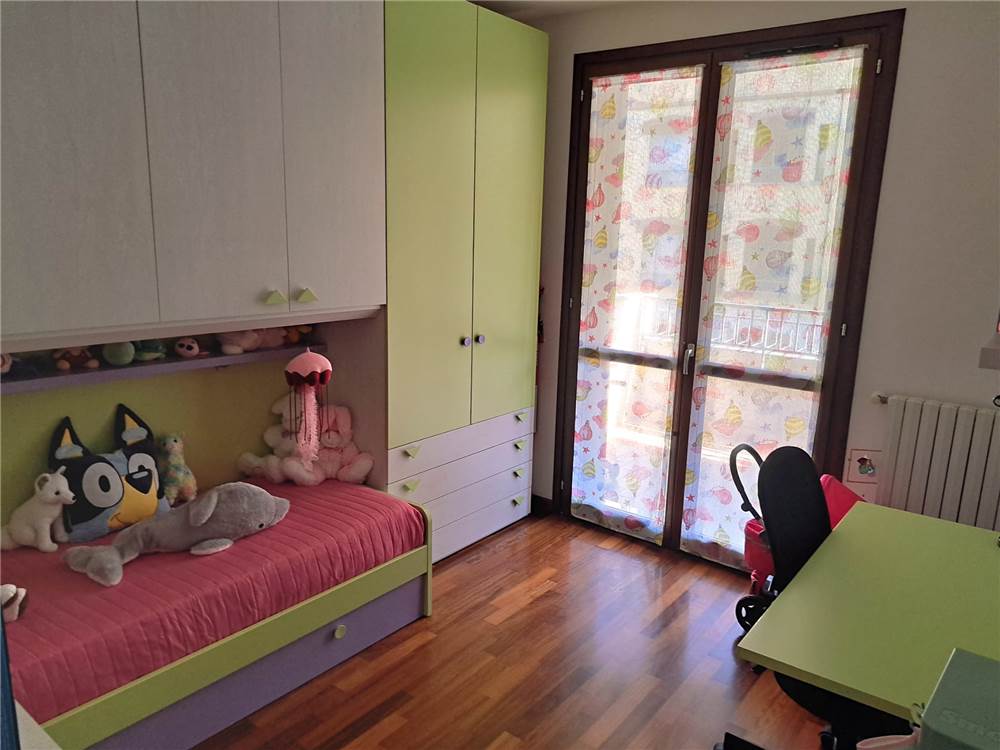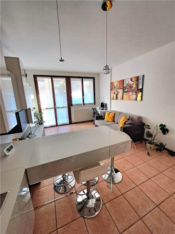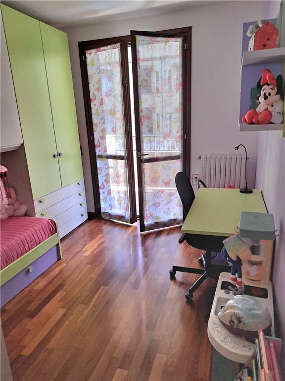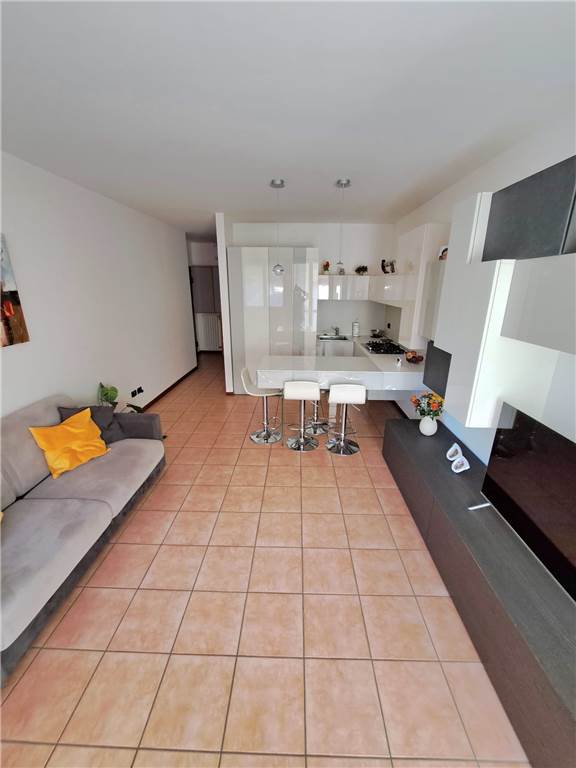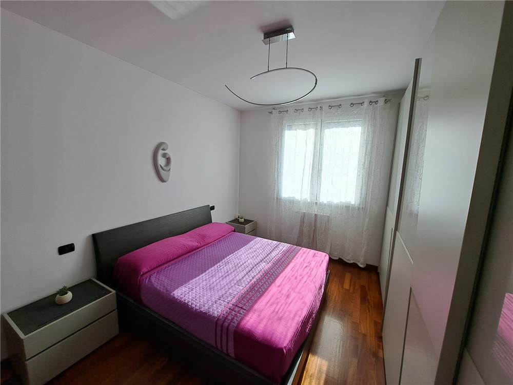 ingresso , soggiorno con cucina a vista e uscita su ampia balconata, anticamera notto, camera matrimoniale, cameretta , doppi servizi, cantina e box. L'appartamento gode di infissi in doppio vetro e aria condizionata .