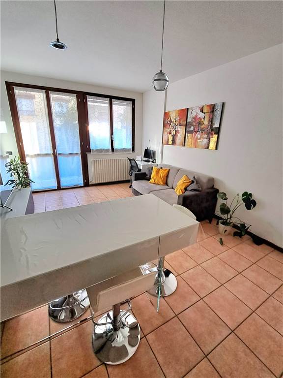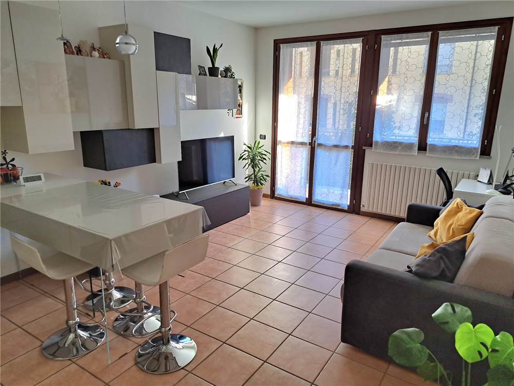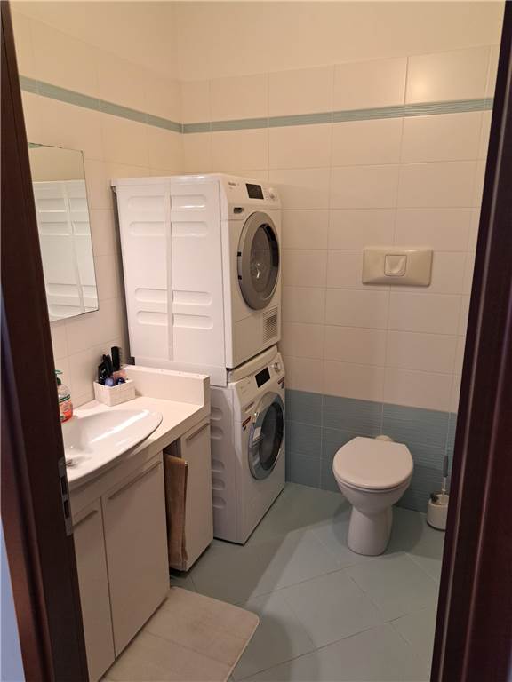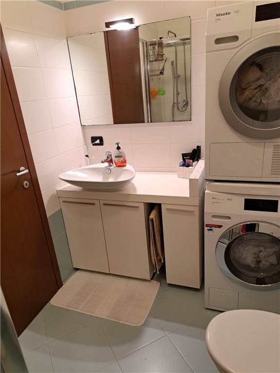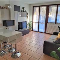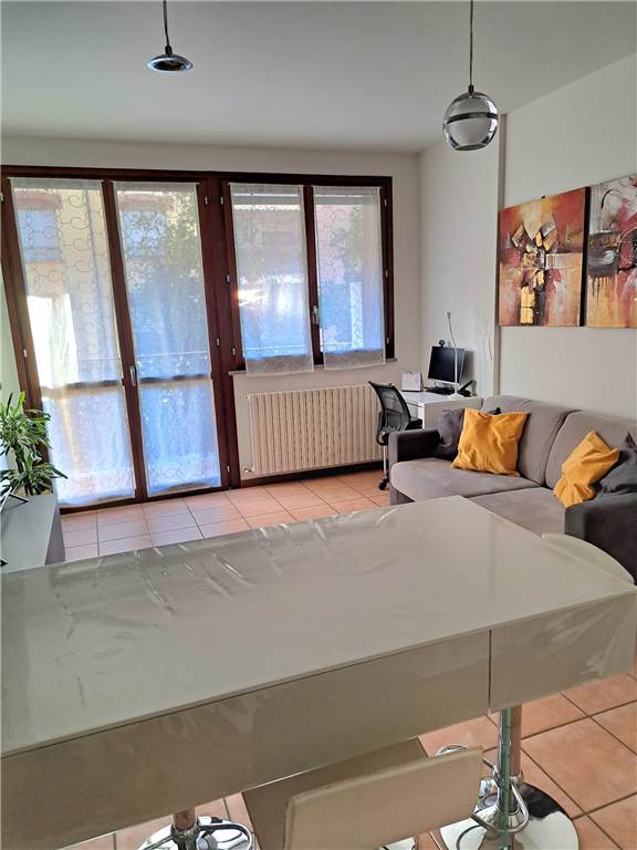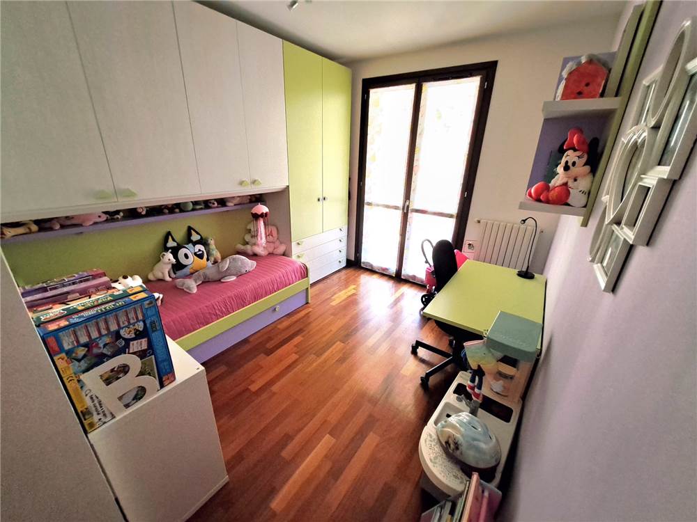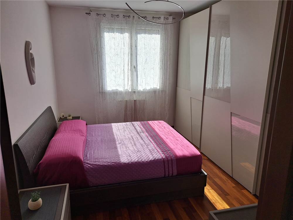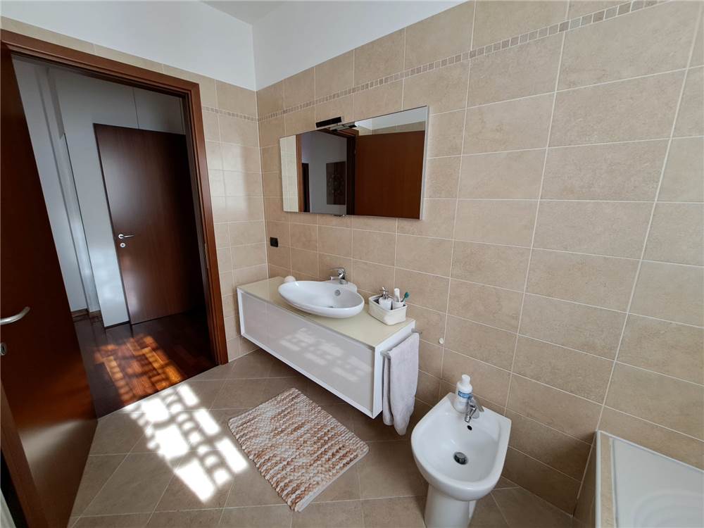 ingresso , soggiorno con cucina a vista e uscita su ampia balconata, anticamera notto, camera matrimoniale, cameretta , doppi servizi, cantina e box. L'appartamento gode di infissi in doppio vetro e aria condizionata .